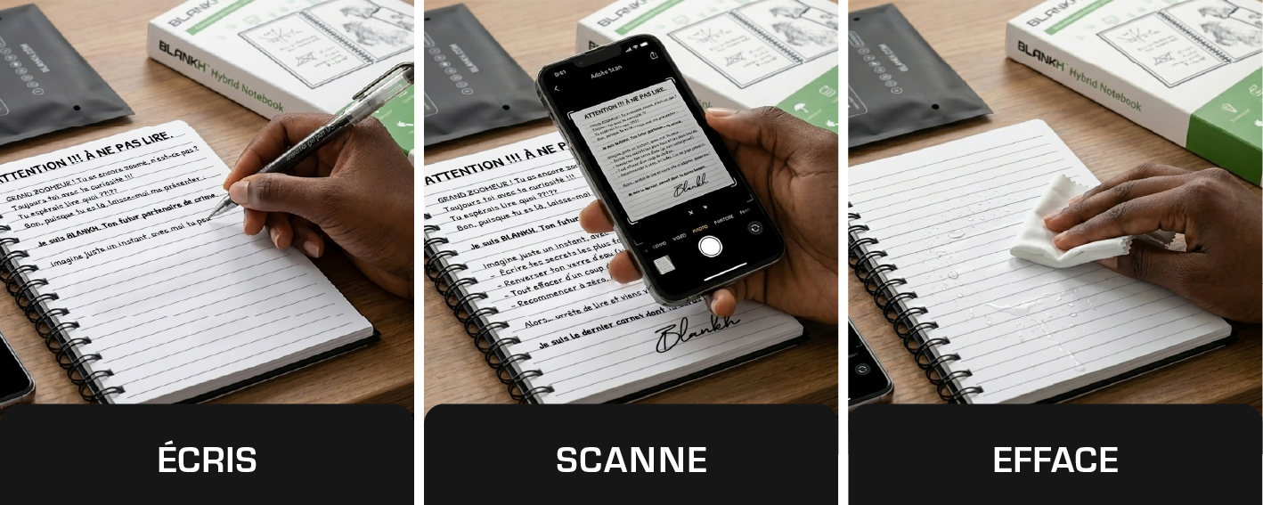 BLANKH™ en fait une réalité. Nous avons fusionné la sensation intemporelle de l'encre sur le papier de pierre avec la mémoire infinie du monde digital.