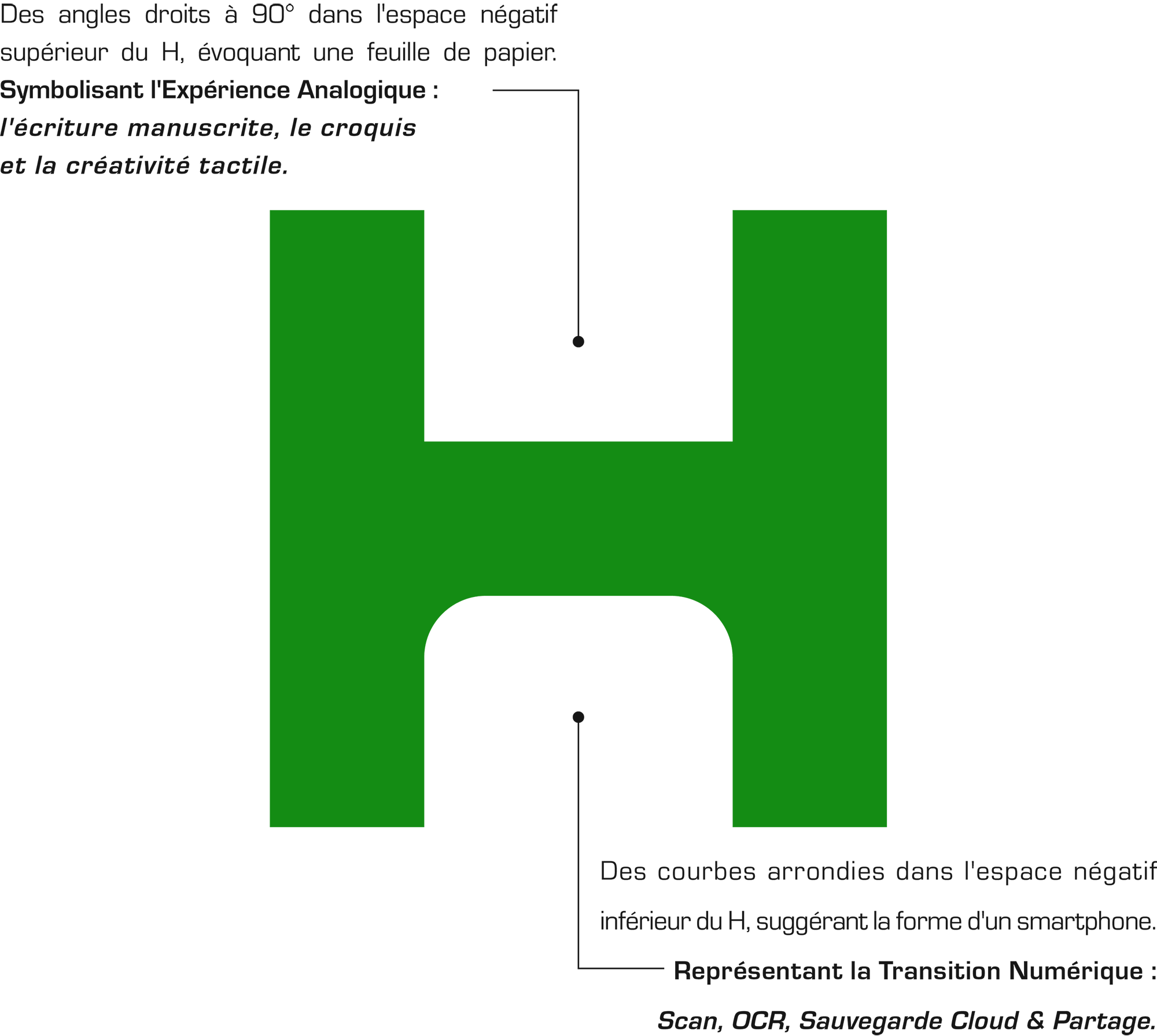 Maintenant, regardez le bas : des courbes douces et arrondies. C'est le monde digital : le flux continu des idées vers le Cloud, la forme organique de votre smartphone, la transition sans effort de la main à l'écran.